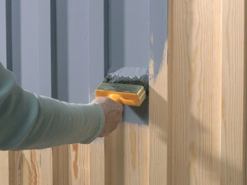 - Påfør trebeskyttelsen og malingen vått-i-vått med pensel eller malerull. Avslutt påføringen ved å pensle med en pensel i samme retning for å få en jevn overflate.