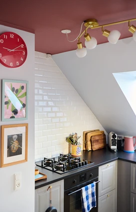Trenden med å male taket i en mørkere nyanse enn veggene bryter med en lang tradisjon med å male taket hvitt for å skape lys og romslighet. Men Belinda har erfart at mørke takfarger også kan ha sine fordeler. For henne har de en beroligende effekt, og når de balanseres med lyse, klare farger på veggene, som i Belindas tilfelle, fungerer de også som en vakker ramme for de andre fargene.