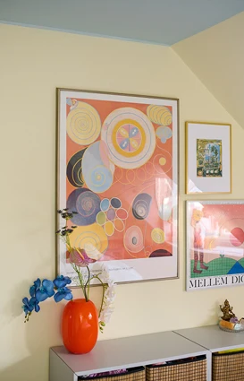 - Tenk på hvilken funksjon fargene skal ha i rommet, som for eksempel den gule fargen i Belindas gang, som gir en følelse av sollys i et rom uten vinduer.