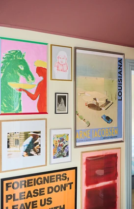 Bilderammene som henger i hans høyde, er laget av uknuselig pleksiglass, og pyntegjenstandene han kan få tak i, er som regel funnet på loppemarkeder, der Belinda elsker å jakte på vakre ting som ikke nødvendigvis koster en formue. Å innrede hjemmet på denne måten er ikke så mye et kompromiss som det er en naturlig konsekvens av deres forkjærlighet for det uformelle og lekne. Paret ser på hjemmet sitt som en lekeplass for hele familien, og de liker å se sønnen utforske de mange gjenstandene og fargene.