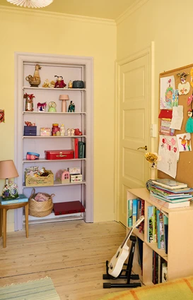 Farger er en stol del av Josefines hverdag, og hun har alltid nye ideer til fargekombinasjoner. Hun får ofte lyst til å male veggene i hele huset, men har alltid dempede farger på de store flatene, siden hun vet at hun fort blir lei av en farge hvis den blir for dominerende. Derfor bruker hun heller interiøret til å leke med farger. På soverommet får den gammelrosa fargen Brown Rose kontrast i form av fargerike dekorelementer, mens gulfargen Lemon på barnerommet er et vakkert bakteppe til den innebygde reolen i Fine Flora.