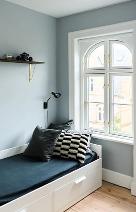 På Bertams rom har de valgt den lyse blågrå fargen My Retreat.
