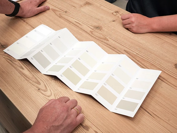 Hos Flügger finner du et bredt utvalg av farger, overflater og produkter – og vi vet at det kan være vanskelig å velge. Våre medarbeidere står klare til å veilede deg, enten du ønsker en lun og klassisk atmosfære, et moderne uttrykk eller bare vil friske opp ett enkelt rom.