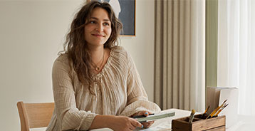 Lys, gråblå toner og tidløse materialer skaper ro i Sofie Holst Nyvolds hjem.
