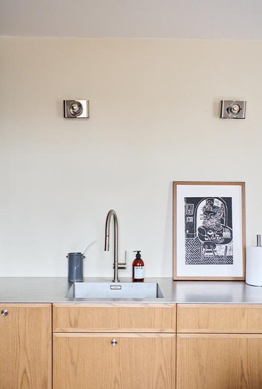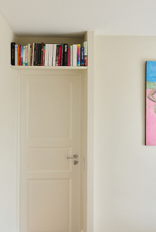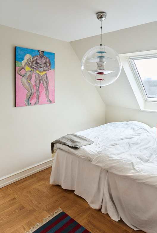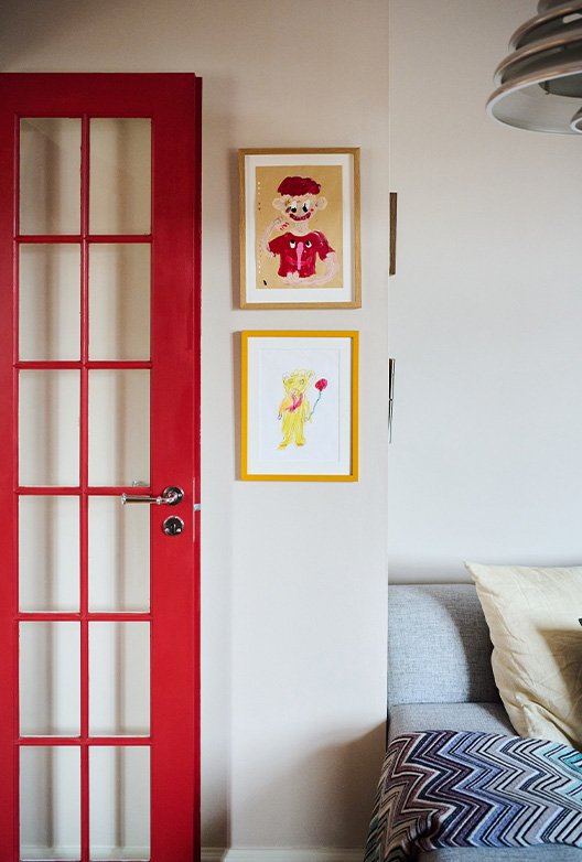 Som fotograf med oppdrag for ELLE og DOSSIER, og som øyet bak bildene til mange av våre egne Talks of Colour-serier, jobber Kavian med estetikk og komposisjon hver eneste dag. Og det vises i hjemmet hans. Her er fargene nøye utvalgt for å skape en rolig bakgrunn som gir rom for kontraster og små overraskelser. De mange lampene fra 50-, 60- og 70-tallet og de finurlige kunstverkene som henger side om side med innrammede barnetegninger, gir den sjarmerende leiligheten edge, og interiøret er en vakker visuell motvekt til de varme, nedtonede fargene på veggene.