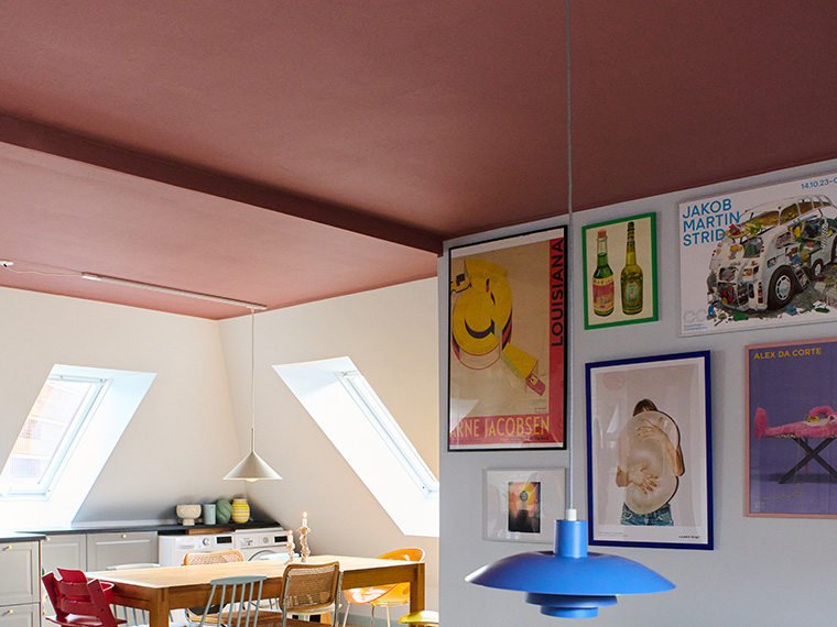 Trenden med å male taket i en mørkere nyanse enn veggene bryter med en lang tradisjon med å male taket hvitt for å skape lys og romslighet. Men Belinda har erfart at mørke takfarger også kan ha sine fordeler. For henne har de en beroligende effekt, og når de balanseres med lyse, klare farger på veggene, som i Belindas tilfelle, fungerer de også som en vakker ramme for de andre fargene.