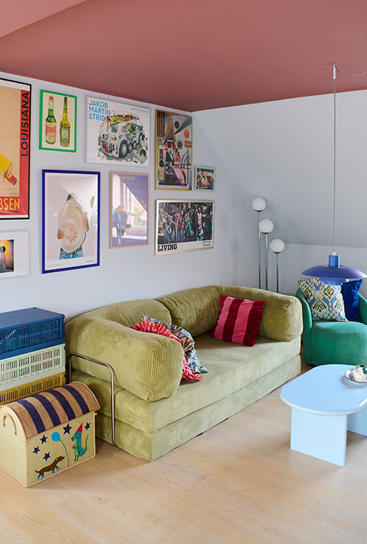 For Belinda og Jeppe er det viktig at hjemmet deres er et sted der de kan slappe av og leve livet som småbarnsfamilie. Derfor er hjemmet i stor grad designet med tanke på funksjonalitet. Selv om paret elsker å innrede hjemmet med farger og gjenstander som stimulerer sansene og skaper glede, har de ikke plassert noe innen rekkevidde for Billie som ikke tåler en tur i gulvet.