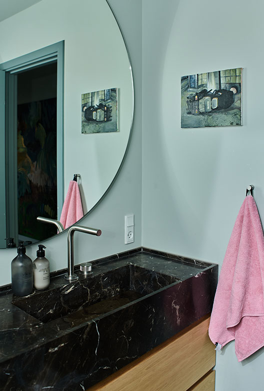 Holdbarhet og tidløshet er grunnen til at kun de malbare flatene i hjemmet har fått farge, fordi det er lettere å male om en vegg enn å bytte ut inventar eller store møbler: "Det er også mer bærekraftig å skifte ut enn om du har kjøpt en bottegrønn sofa som du går lei av", sier Emil, som drømmer om å innlemme farger i garderoben sin etter hvert: "Jeg elsker faktisk farger og tiltrekkes av fargerik kunst, klær og møbler. I fremtiden vil jeg gjerne bli enda flinkere til å bruke farger i klesvalget, men jeg er ikke modig nok ennå."