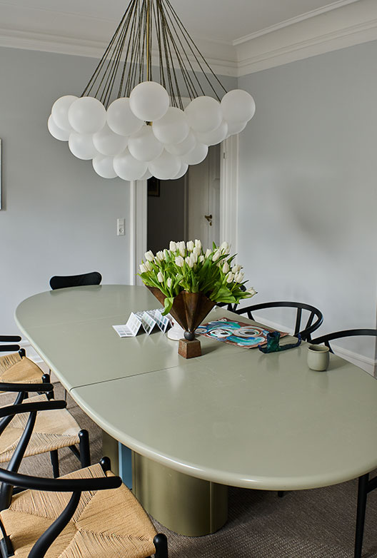 "Lys er utrolig viktig. Lyset strømmer inn i leiligheten fra begge sider, og siden vi bor i 5. etasje med utsikt over byens tak og himmel, føles det ekstra luftig."