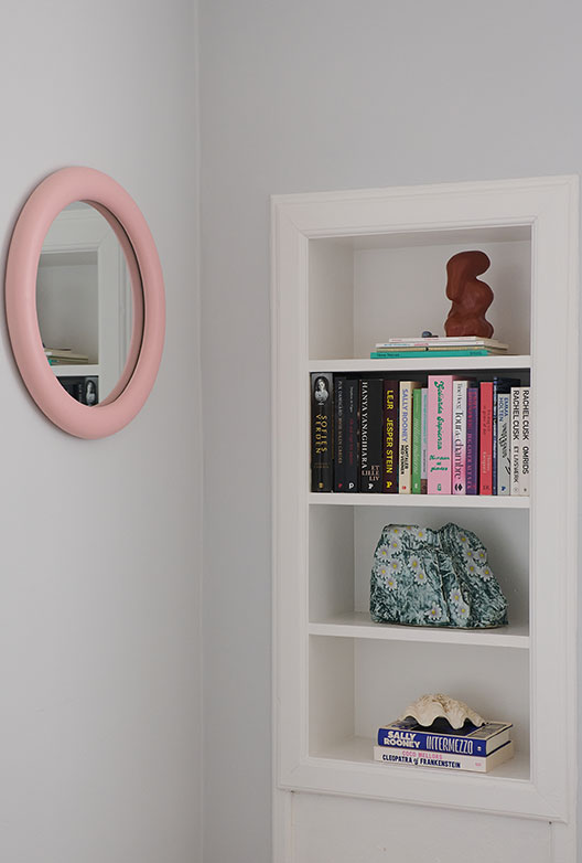 Sofie og Jonathan har bevisst valgt noen få tilbakevendende materialer for å gi leiligheten en helhetlig og rolig følelse. Hver detalj skal fortelle en historie, noe som er knyttet til familiens liv eller ting de har funnet underveis.