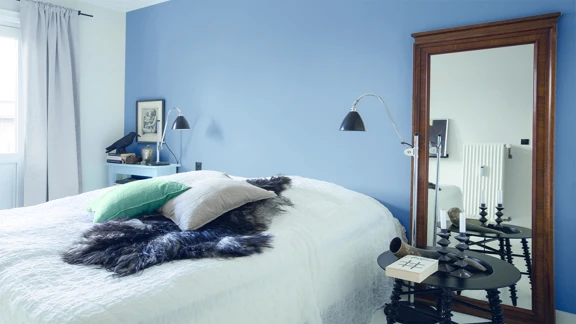En lys og meget stilfull blåfarge som tilfører rommet et lett uttrykk. Fargen minner om en åpen himmel.