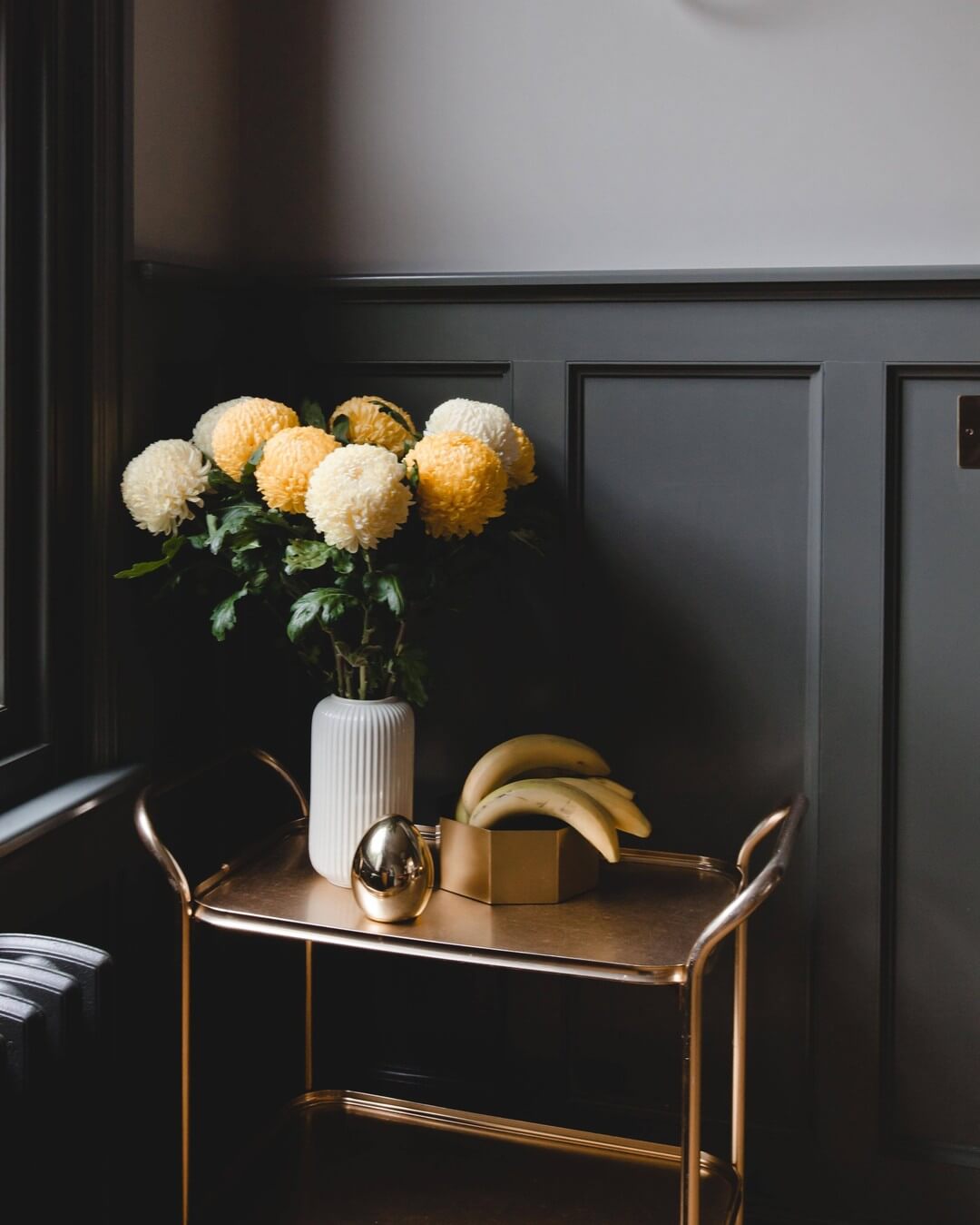 For mange kan det være overveldende og til tider forvirrende å finne den riktige malingen til forskjellige formål. Nettopp av den grunn har vi gjort det enkelt for deg å velge med vår High Finish-serie, som er utviklet for bruk på tre- og metaloverflater. Serien fungerer svært godt på glatte materialer som panelene dine, hvor det eneste du trenger å bekymre deg for, er valg av glans og farge. Utvalget byr på en glansfull overflate med glans 50 og 90, men også et dempet uttrykk med enten halvmat glans 20 eller helmatt glans 5. Vi anbefaler glans 20 på paneler, dørkarmer og dørterskelen, fordi veggens glans ofte ikke er høyere enn 20, noe som gir bedre balanse i rommet. Hvis du synes at gjenskinn høres mer tiltalende ut, kan du gjerne vurdere glansnivåer over 50, hvor du oppnår størst mulig smussavvisende overflate. Jo høyere glans, desto bedre motstandsdyktighet og rengjøringsvennlig flate. Husk at glans 20 gir et dempet uttrykk til rommet, samtidig som slitestyrken fortsatt er til stede.
