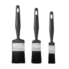 Utvendig børstesett med ergonomisk plasthåndtak sikrer godt grep. Non-drop penselfibre minimerer sprut og fordeler maling effektivt. Egnet for behandling av ubrutte overflater.