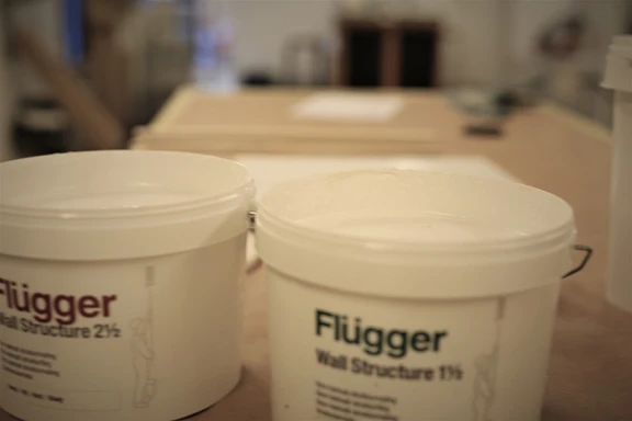 Vår fineste variant er Flügger Sand - Sandmaling, som gir et finpusset utseende. Den er lett å jobbe med og påføres med en korthåret malerrulle. Den kan tones i mange forskjellige farger, og er vår mest populære strukturmaling. Se gjerne vår video for å få en idé om uttrykket.