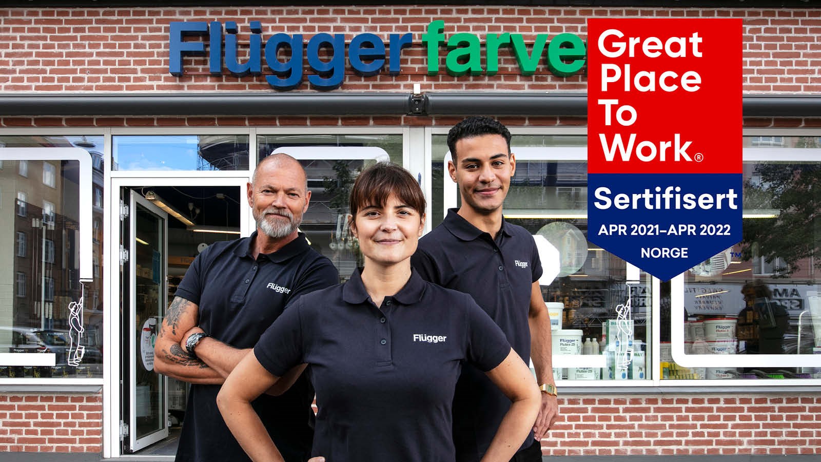 Vi er nå offisielt et Great Place to Work-sertifisert selskap! Som betyr at vi er nå en av Norges beste arbeidsplasser! Medarbeidere som er motiverte og trives er vår viktigste ressurs og vi er stolt over at 90 % av våre medarbeidere sier at Flügger er et flott sted å jobbe. Motiverte medarbeidere som trives vil også yte god kundeservice – noe som kommer våre kunder til gode.