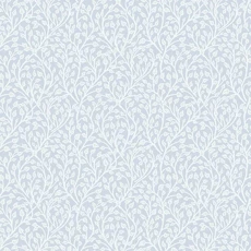 - Lite bladmønster i hvitt på lyseblå bakgrunn
