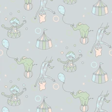 - Barnetapet med sirkusmønster på grå bakgrunn med rosa, blått og grønt mønster