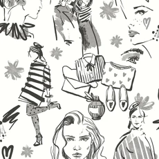 Et raffinert veggkledning med et gjennomført motiv som tydelig er inspirert av moteindustrien.