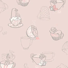 Koselig og fantasifull barnetapet med kreativt mønster i en vakker rosa nyanse.