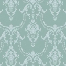 Nydelig veggkledning i retrostil i grønne nyanser med fint og gammeldags grafisk mønster.